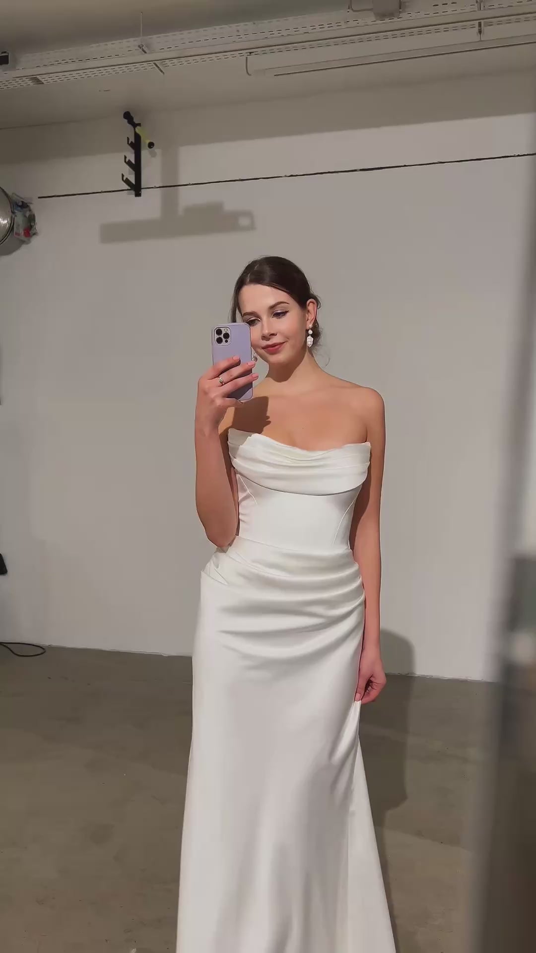 Nora ist ein modernes Brautkleid – minimalistisch, elegant und gleichzeitig ausdrucksstark. Der skulpturale Cat-Eye-Ausschnitt und die zarte Drapierung am Oberteil geben dem Design eine klare, architektonische Linie, während der figurbetonte Mermaid-Rock eine feminine Silhouette formt. Gefertigt aus silky Satin wirkt Nora besonders clean auf Fotos und passt perfekt zu City Weddings, kleinen Trauungen und standesamtlichen Feiern.