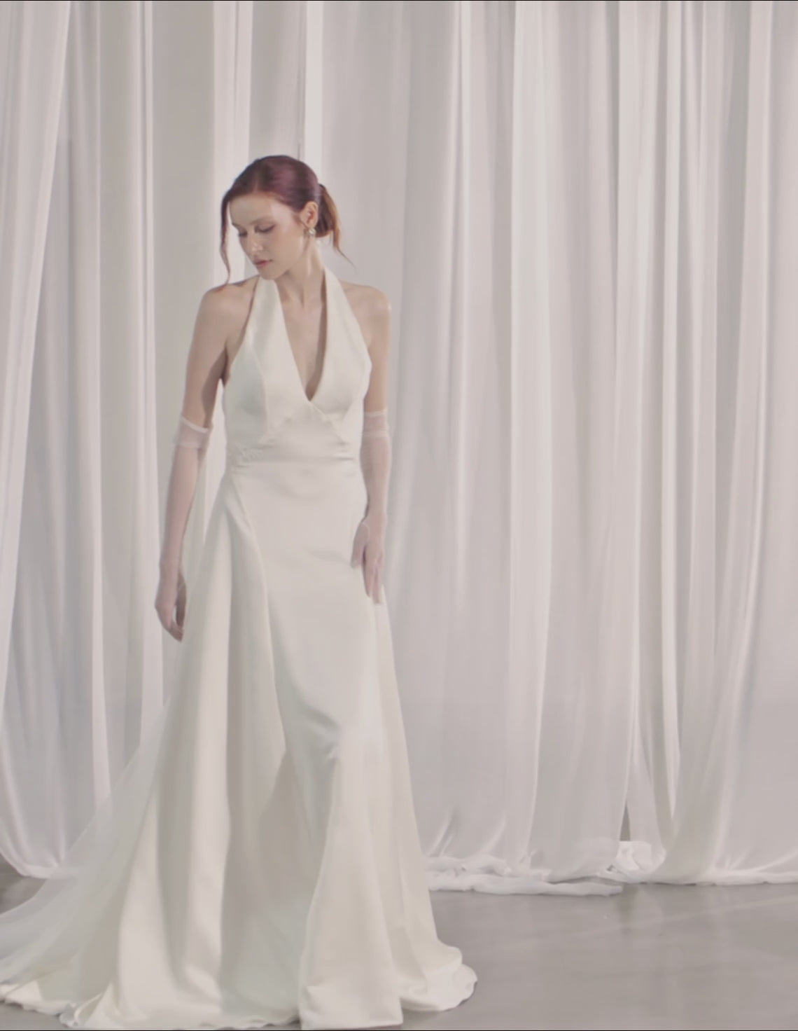 Robe de mariée en satin à col halterneck et dos nu